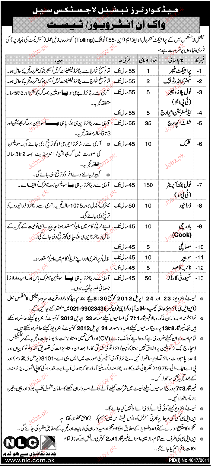 Apply as per details in job advertisement. Login to view further details of how to apply via https://www.jobz.pk online.