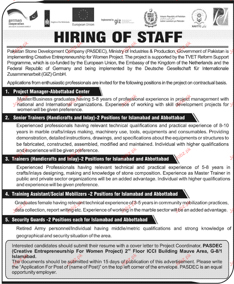 Apply as per details in job advertisement. Login to view further details of how to apply via https://www.jobz.pk online.