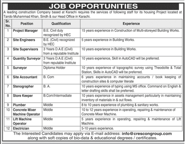 Apply as per details in job advertisement. Login to view further details of how to apply via https://www.jobz.pk online.