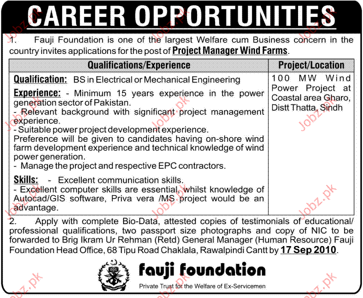 Apply as per details in job advertisement. Login to view further details of how to apply via https://www.jobz.pk online.