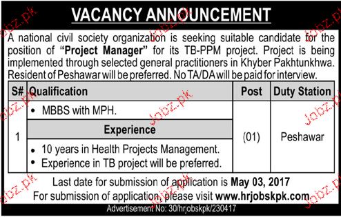 Apply as per details in job advertisement. Login to view further details of how to apply via https://www.jobz.pk online.