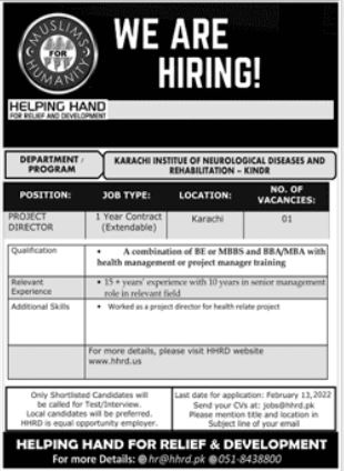 Vacancies in Helping Hand For Relief And Development HHRD Advertisement January 2022