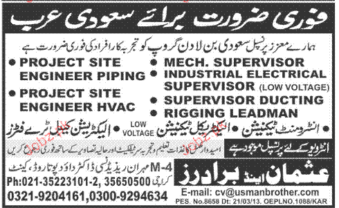 Project Site Engineer Piping, Mechanical Supervisor Wanted