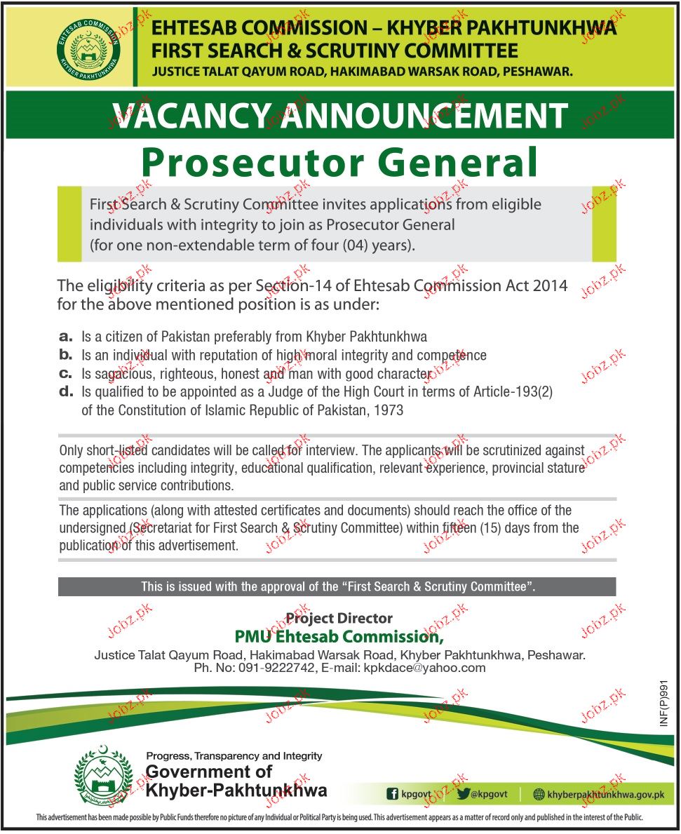 Prosecutor General Job in Ehtesab Commission Govt KPK