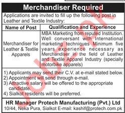 Protech Manufacturing Sialkot Jobs For Merchandiser