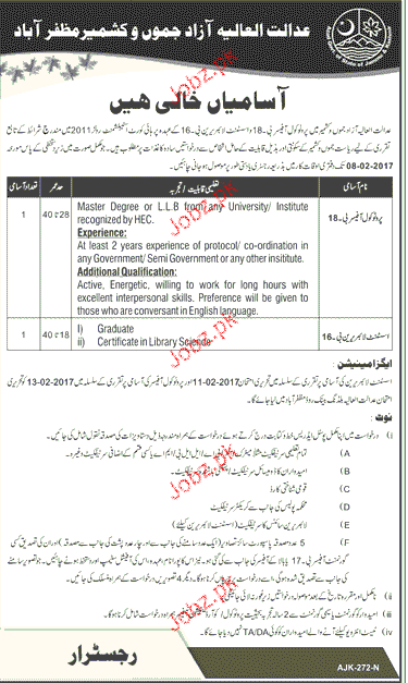 Apply as per details in job advertisement. Login to view further details of how to apply via https://www.jobz.pk online.