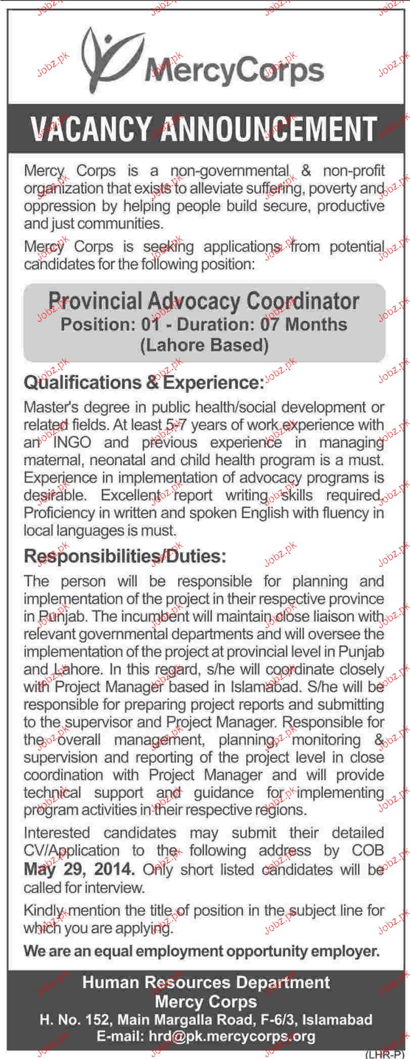 Apply as per details in job advertisement. Login to view further details of how to apply via https://www.jobz.pk online.