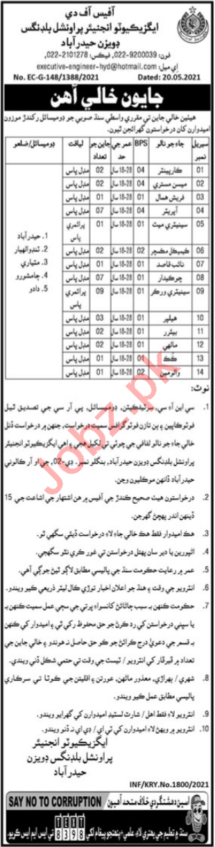 Vacancies in Provincial Buildings Division Advertisement May 2021