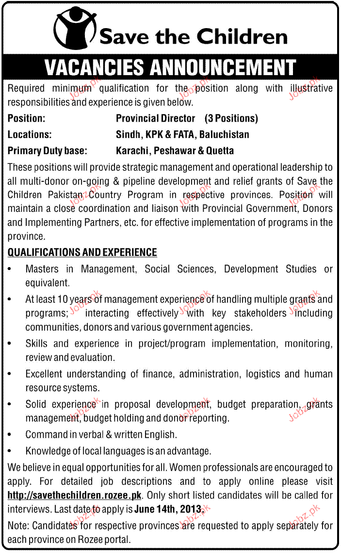 Apply as per details in job advertisement. Login to view further details of how to apply via https://www.jobz.pk online.