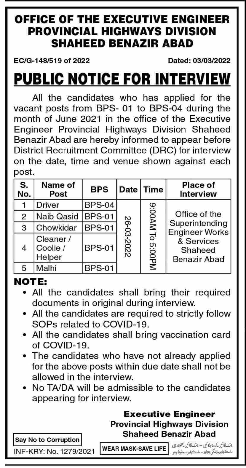 Provincial Highway Division Shaheed Benazirabad Interviews