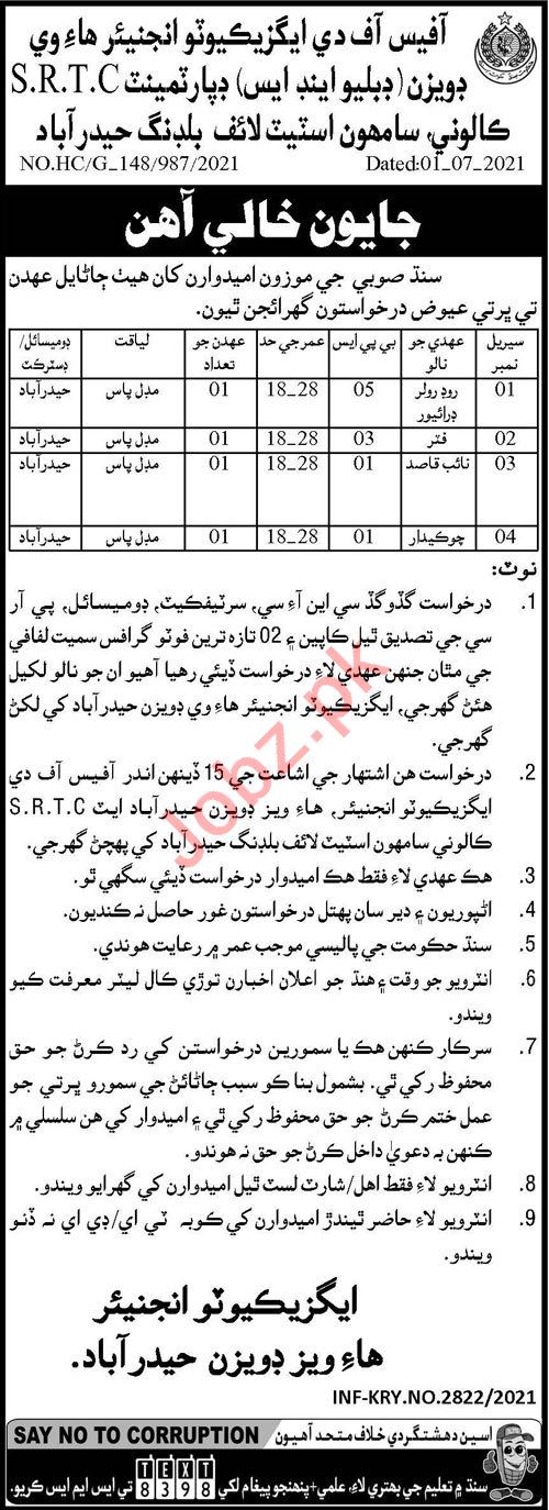 Provincial Highway Division W&S Department Sindh Jobs 2021