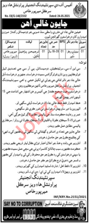 Provincial Highways Circle Mirpur Khas Jobs 2021 For Sweeper