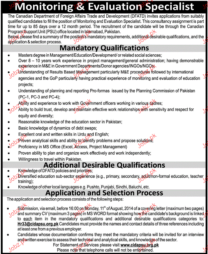 Apply as per details in job advertisement. Login to view further details of how to apply via https://www.jobz.pk online.