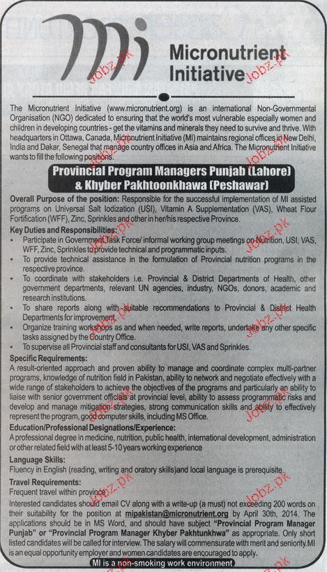Apply as per details in job advertisement. Login to view further details of how to apply via https://www.jobz.pk online.