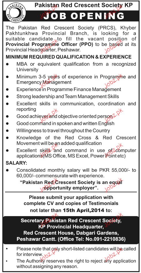 Provincial Programme Officer Job In Pakistan Red Crescent