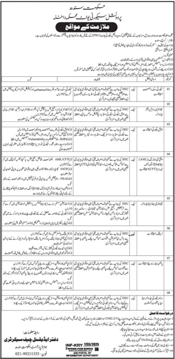 Latest Provincial Security Unit PSU Management Posts Karachi 2025