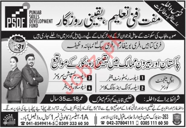 Punjab Skills Development Fund PSDF Lahore, Pakistan are staring admissions spring 2020 for the classes of Diploma Restaurant Manager, Cooking & Baking, Tour Operator and Reception Services. Read newspaper ad for exact details.