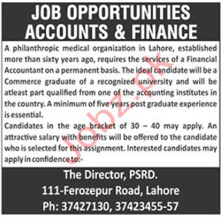 Latest PSRD College of Rehabilitation Sciences Accounting Posts Lahore 2025