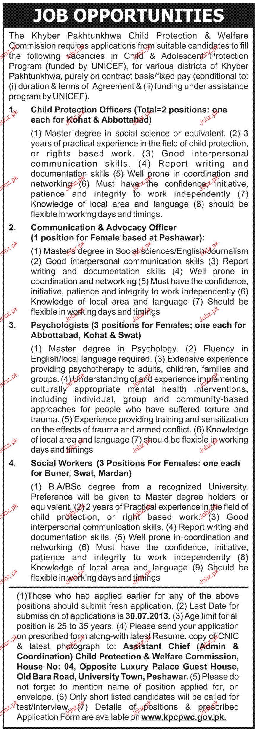 Apply as per details in job advertisement. Login to view further details of how to apply via https://www.jobz.pk online.