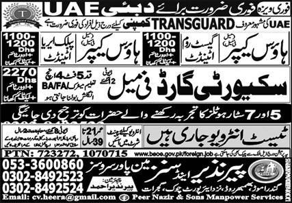 Peer Nazeer & Sons Manpower Services is looking for candidates for following posts as per job advertisement published in daily Express Newspaper of July 16, 2022 for location Abu Dhabi, dubai UAE: