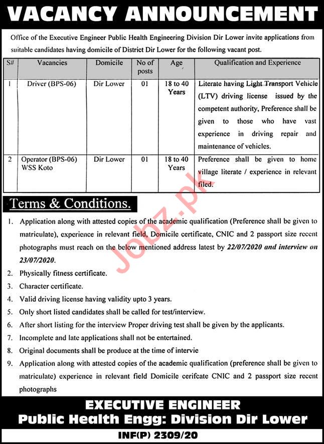 Latest Public Health Engineering Department Labor Posts Lower Dir 2025
