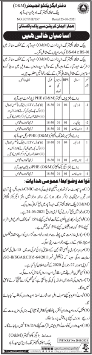 Vacancies in Public Health Engineering Department Advertisement June 2021