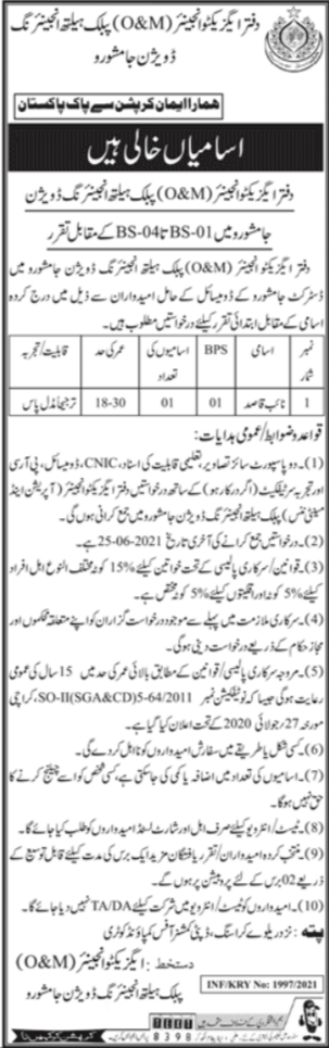 Public Health Engineering Division Jamshoro Jobs 2021