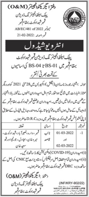Public Health Engineering Division invites applications for job positions advertised in daily Jang dated 27 February 2022 for following vacancies in qambar shahdadkot Sindh Pakistan.