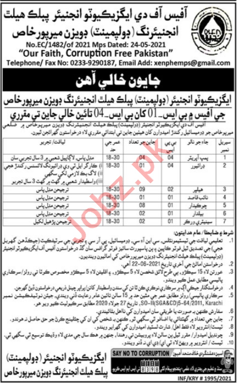 Public Health Engineering Division PHED Mirpur Khas Jobs
