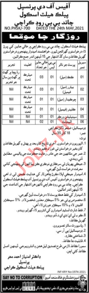 Public Health School PHS Karachi Jobs 2021 For Chowkidar