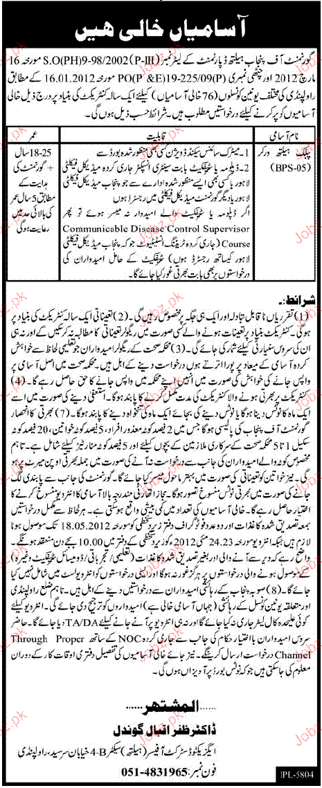 Apply as per details in job advertisement. Login to view further details of how to apply via https://www.jobz.pk online.