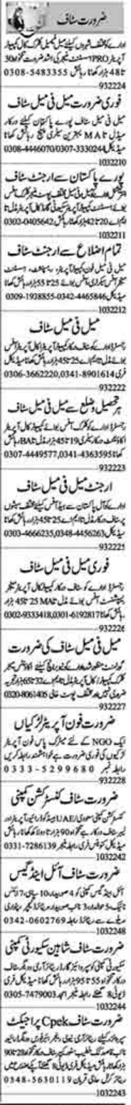 Private Company Lahore, lahore Punjab Pakistan invites applications from eligible candidates for the post of pro, receptionist, assistant manager, office boy, public relation officer, khateeb, manager, telephone operator, office staff, accounts manager, driver, cook, supervisor guard, security guard, accountant, computer call operator, clerk, labor, store keeper, office secretary, call operator, computer operator, clerk computer, female clerk and labor staff as per advertisement of March 10, 2022 published in daily Dunya Newspaper. Preferred Education is Matric, Intermediate, Bachelor and Middle etc.