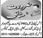 Private Company jobs advertisement dated about 1 April 2023 in daily Aaj Newspaper invites application for the vacant post of public relation officer and pro in Abbottabad, abbottabad Khyber Pakhtunkhwa KPK Pakistan. Bachelor etc. educational qualification will be preferred.