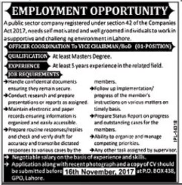 Apply as per details in job advertisement. Login to view further details of how to apply via https://www.jobz.pk online.