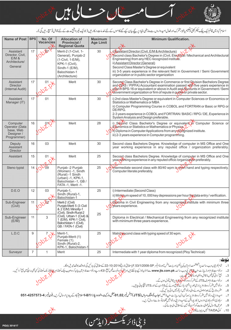 Apply as per details in job advertisement. Login to view further details of how to apply via https://www.jobz.pk online.