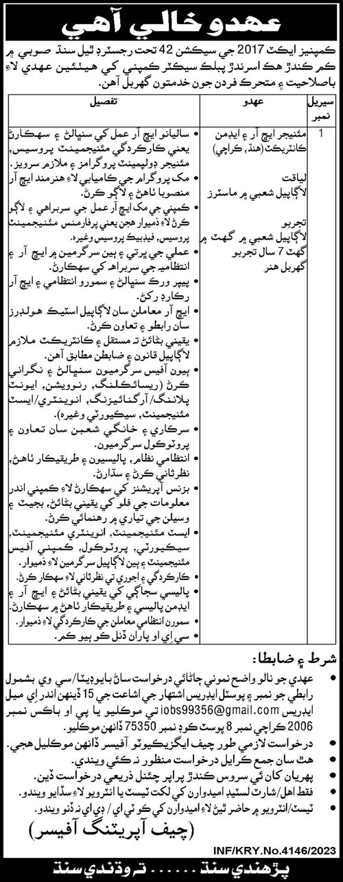 Public Sector Company invites applications for job positions advertised in daily Kawish dated 9 October 2023 for following vacancies in Karachi, karachi Sindh Pakistan.