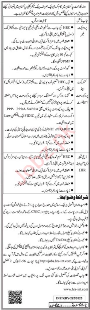 Public Sector Company is looking for candidates for following posts as per job advertisement published in daily Jang Newspaper of January 26, 2025 for location Karachi, karachi Sindh Pakistan: