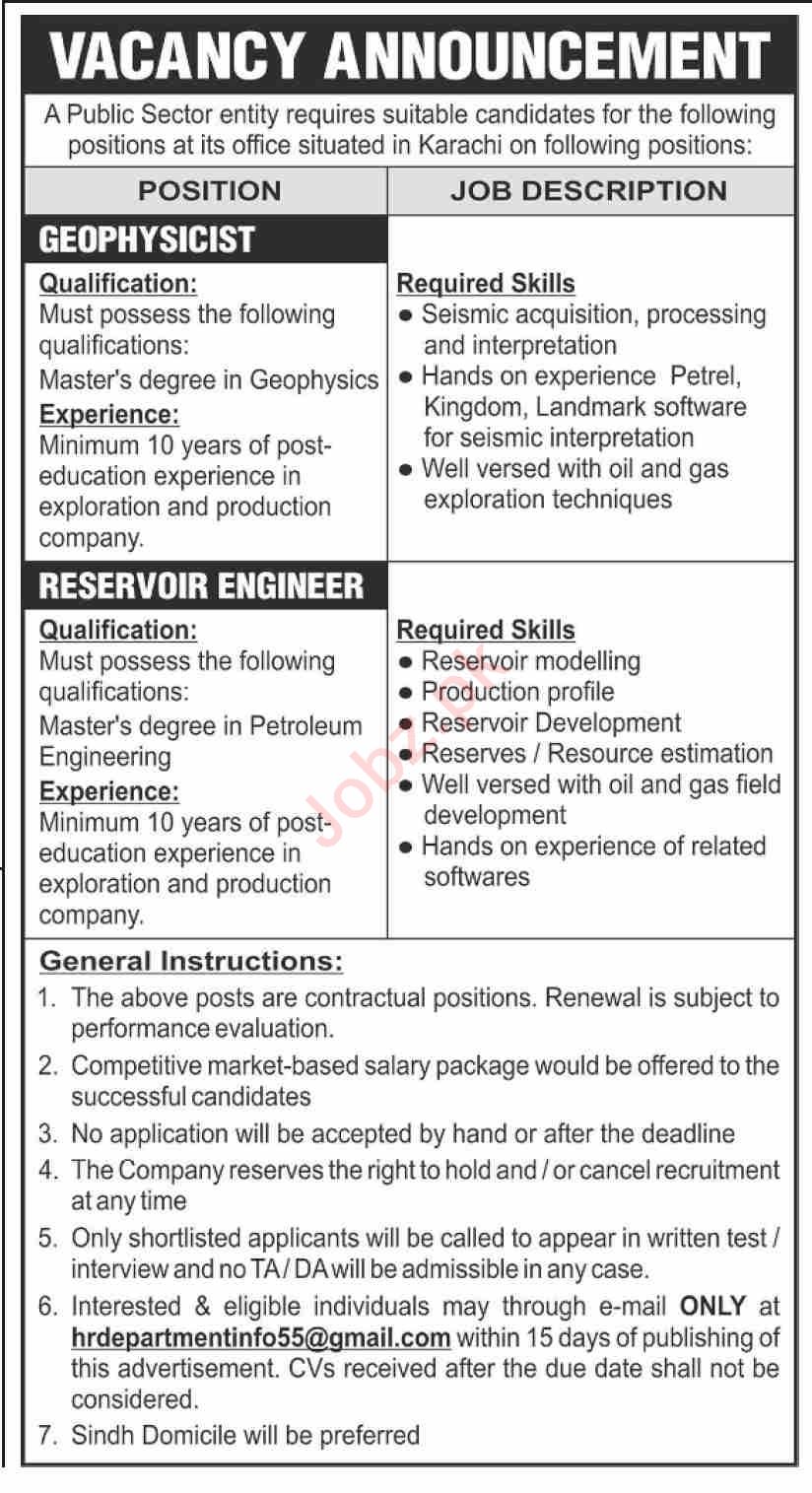 Public Sector Company invites applications for job positions advertised in daily Dawn dated 28 October 2024 for following vacancies in Karachi, karachi Sindh Pakistan.