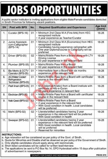 Public Sector Institution Hyderabad Jobs 2018 For Curator