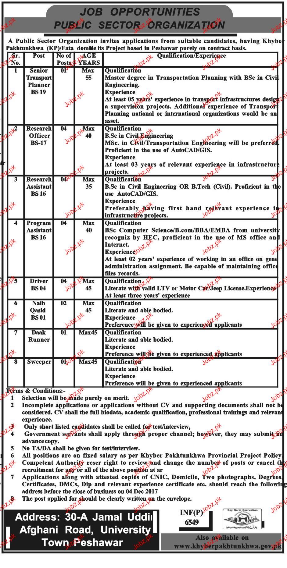Latest Public Sector Organization Admin Clerical Posts Peshawar 2025