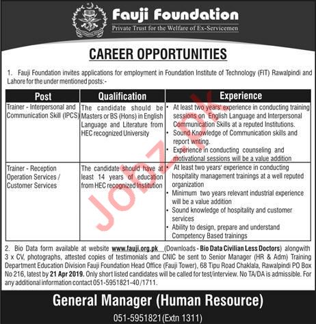Apply as per details in job advertisement. Login to view further details of how to apply via https://www.jobz.pk online.