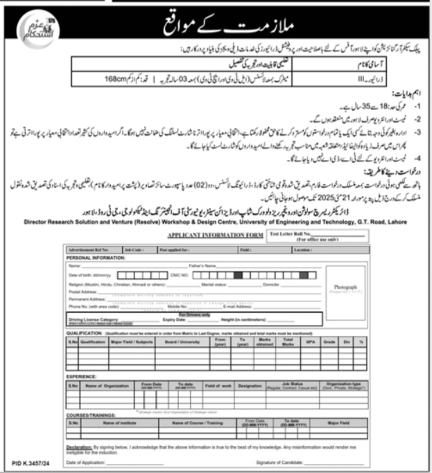 Apply as per details in job advertisement. Login to view further details of how to apply via https://www.jobz.pk online.
