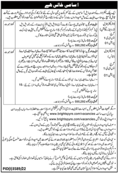 Apply as per details in job advertisement. Login to view further details of how to apply via https://www.jobz.pk online.