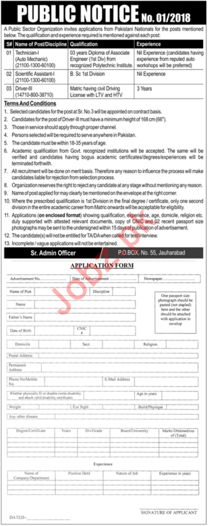 Public Sector Organization Jauharabad Jobs 2018