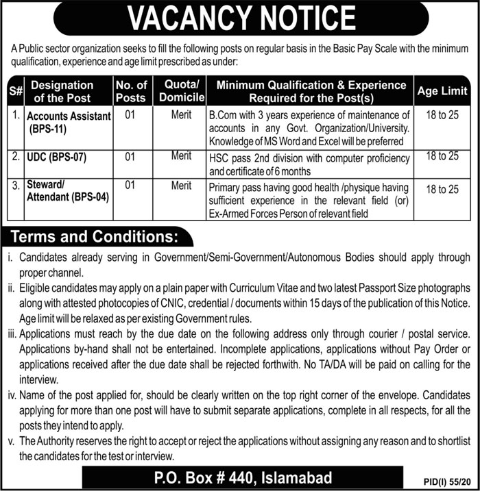 Public Sector Organization Jobs 2020 in Islamabad
