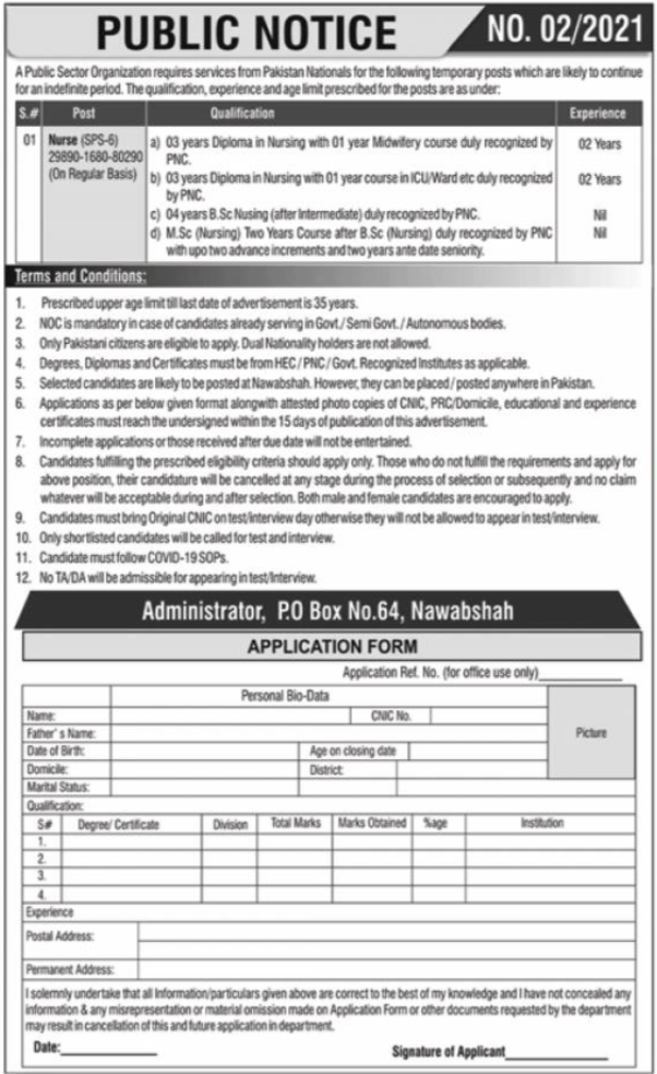 Public Sector Organization Jobs 2021 in Nawabshah