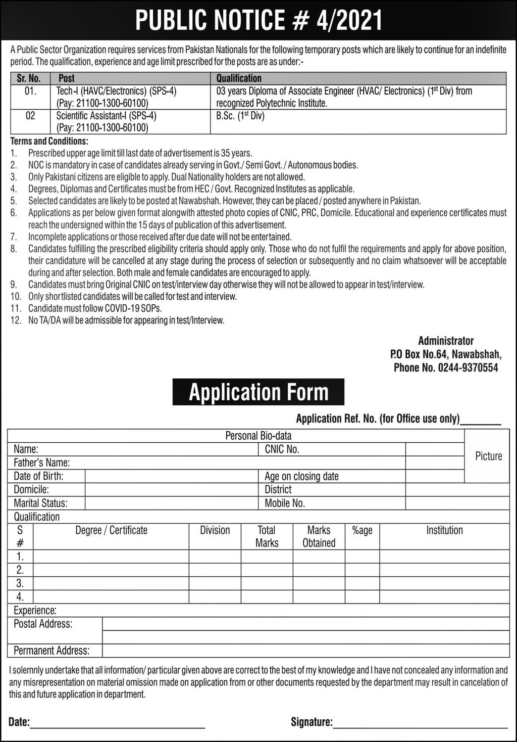 Public Sector Organization Jobs In Nawabshah