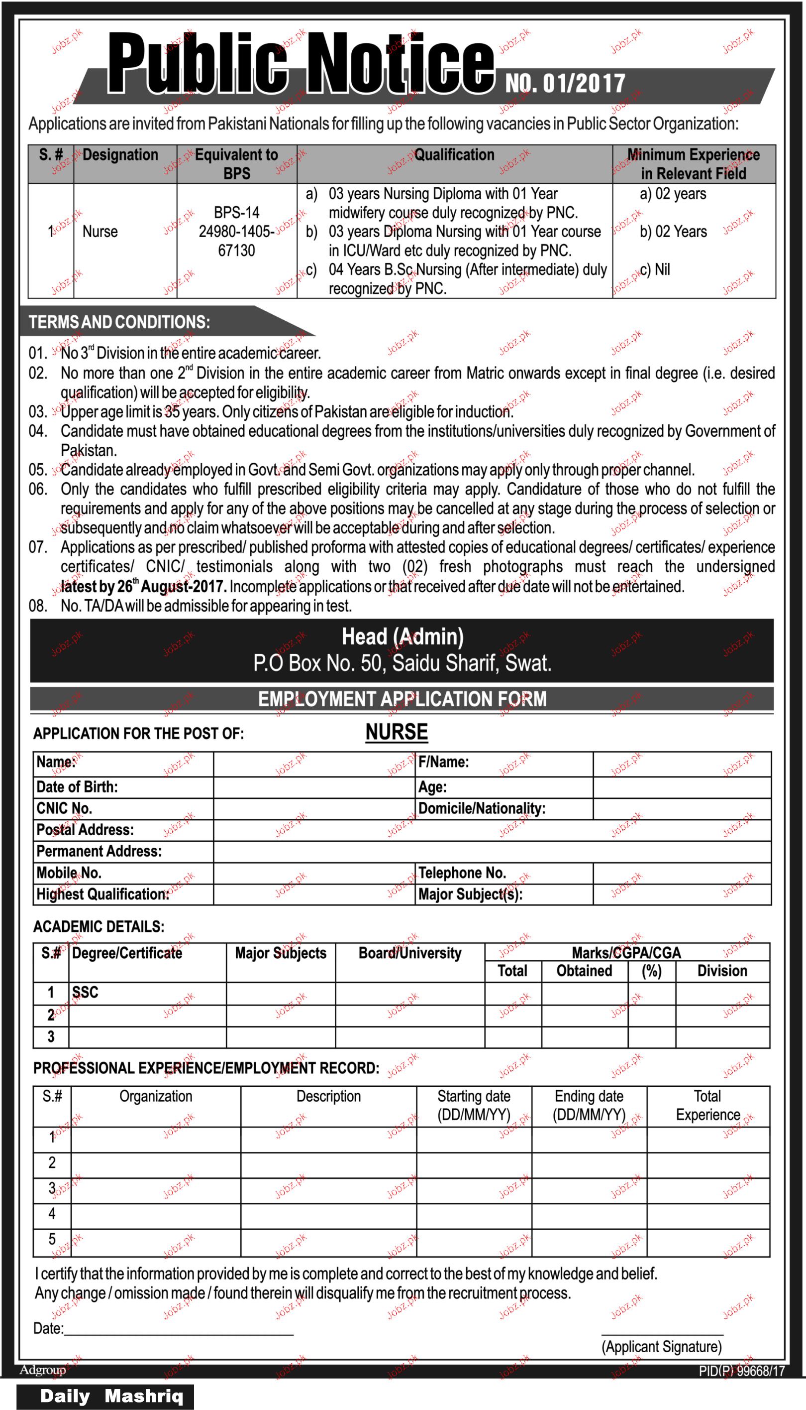 Apply as per details in job advertisement. Login to view further details of how to apply via https://www.jobz.pk online.