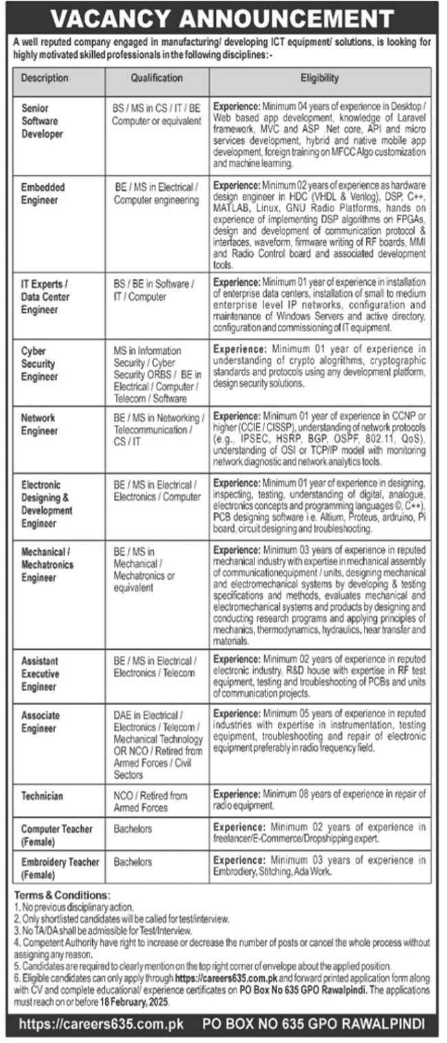 Public Sector Organization is looking for candidates for following posts as per job advertisement published in daily Nation Newspaper of February 3, 2025 for location Rawalpindi, rawalpindi Punjab Pakistan:
