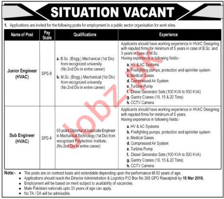 Public Sector Organization Rawalpindi Jobs 2018